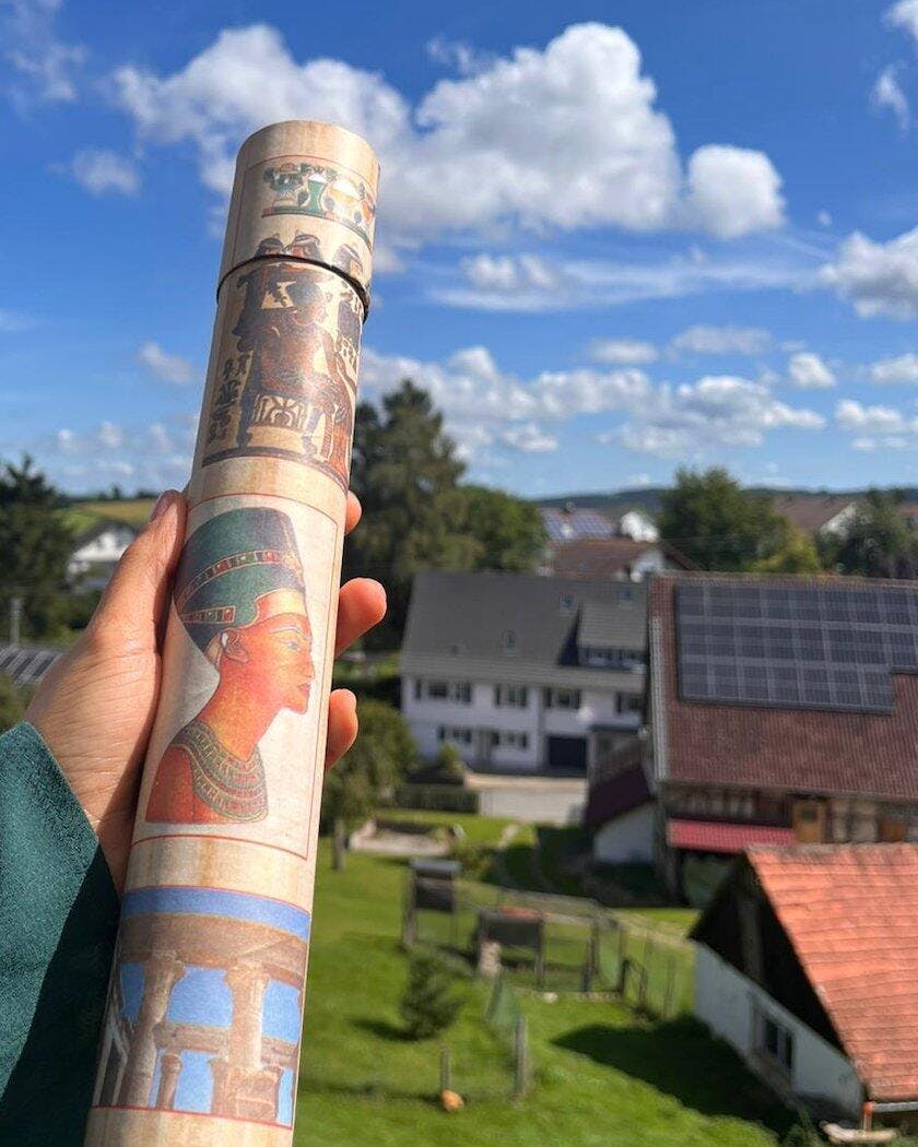 Jedes 30x40 cm große Papyrus ist ein Meisterwerk ägyptischer Handwerkskunst, gefertigt aus nachhaltigem Material und zu 100% in Ägypten hergestellt. Da jedes Stück handgefertigt ist, können Farben und Formen leicht vom Bild abweichen. Inklusive gratis Papyrus-Lesezeichen und versandt in einer dekorativen Rolle, direkt zu dir nach Hause.