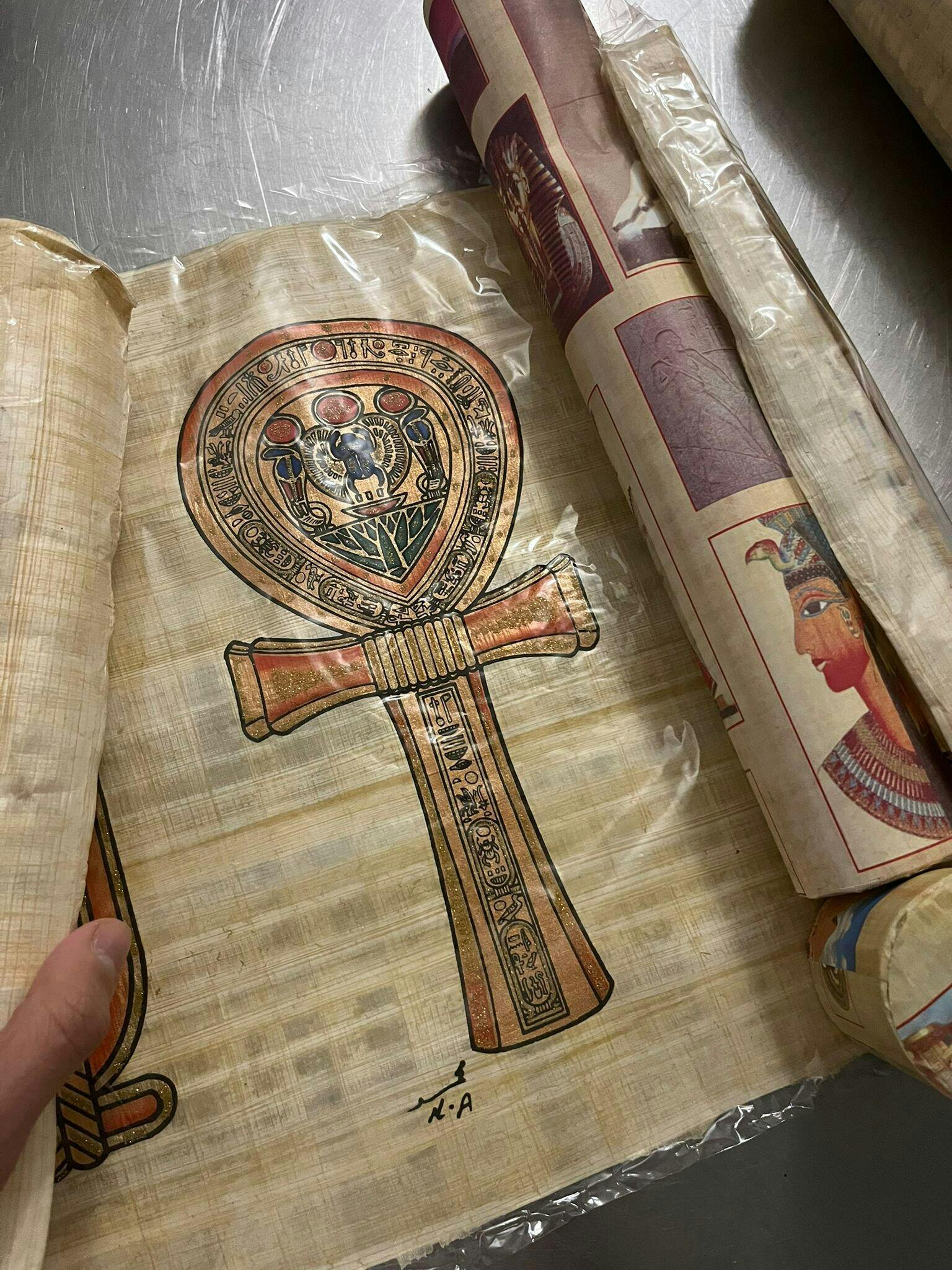 Jedes 30x40 cm große Papyrus ist ein Meisterwerk ägyptischer Handwerkskunst, gefertigt aus nachhaltigem Material und zu 100% in Ägypten hergestellt. Da jedes Stück handgefertigt ist, können Farben und Formen leicht vom Bild abweichen. Inklusive gratis Papyrus-Lesezeichen und versandt in einer dekorativen Rolle, direkt zu dir nach Hause.